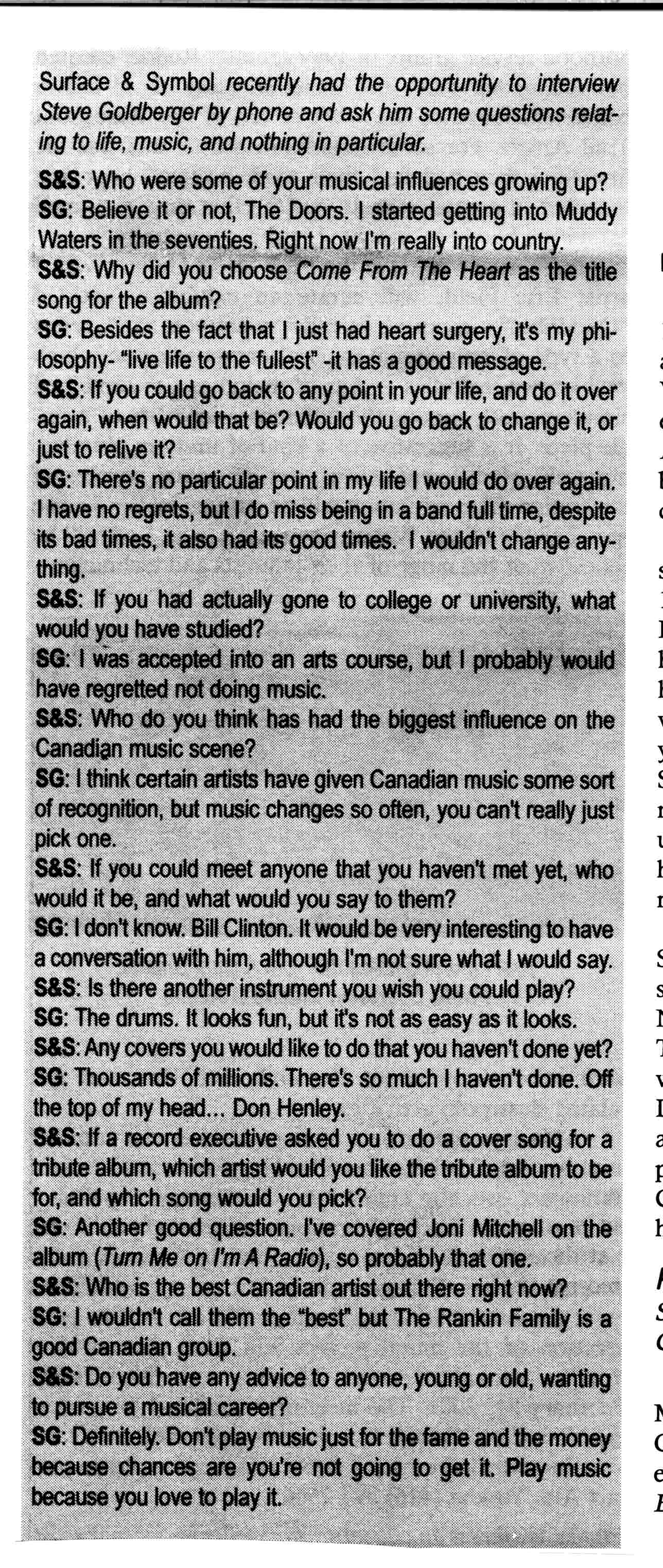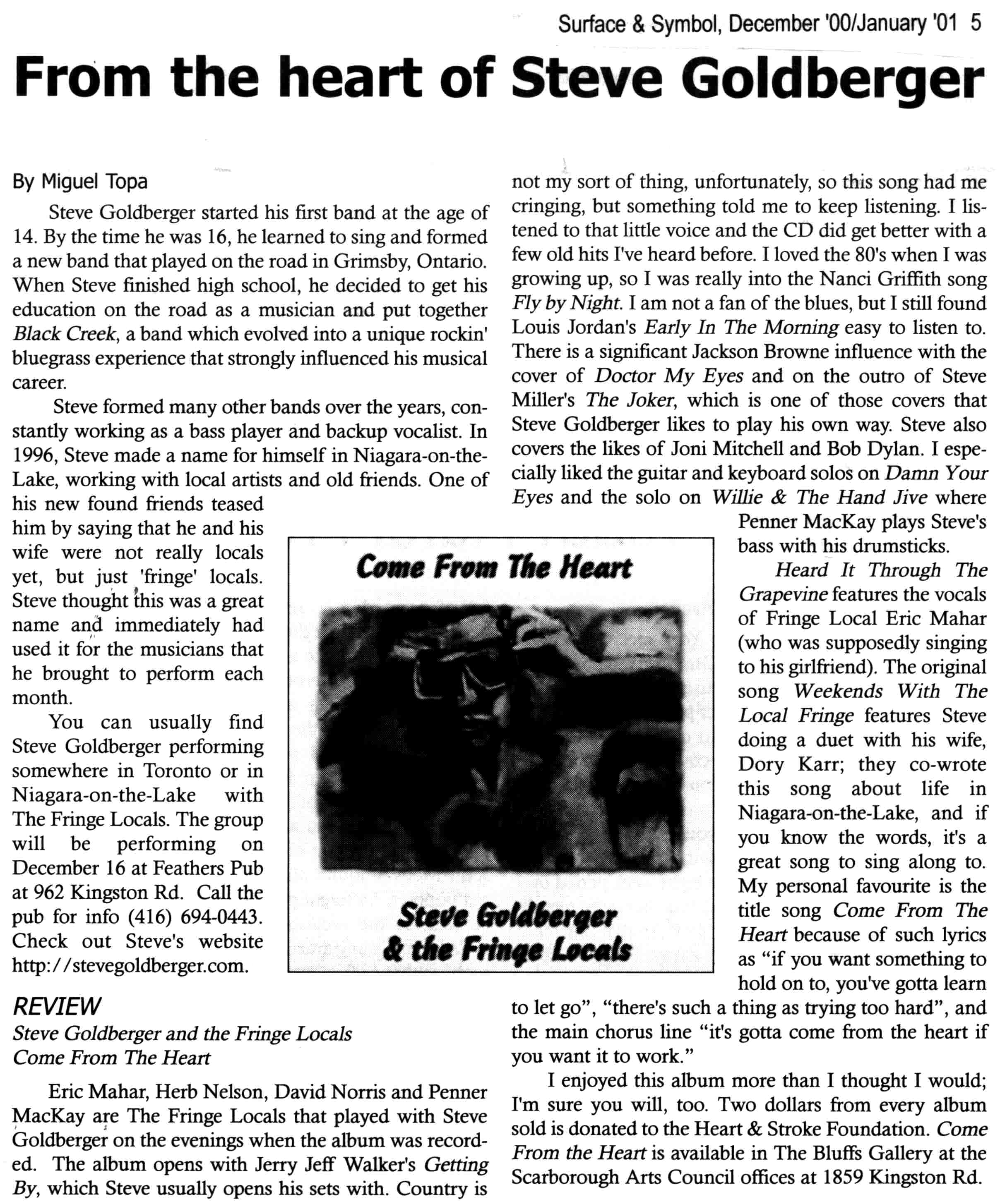 This may take a little while to download, but it's a pretty funny/amateur review and interview done by a student for the Scarborough Arts Council newspaper, "Surface & Symbol".